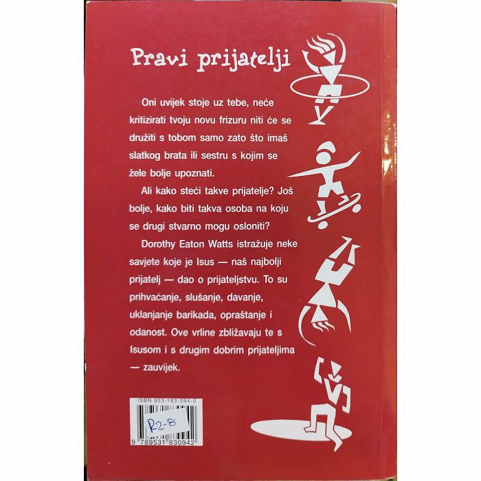 Pravi prijatelji Oni uvijek stoje uz tebe, neće kritizirati tvoju novu frizuru niti će se družiti s tobom samo zato što imaš slatkog brata ili sestru s kojim se žele bolje upoznati. Ali kako steći takve prijatelje? Još bolje, kako biti takva osoba na koju se drugi stvarno mogu osloniti? Dorothy Eaton Watts istražuje neke savjete koje je Isus naš najbolji prijatelj dao o prijateljstvu. To su prihvaćanje, slušanje, davanje, uklanjanje barikada, opraštanje i odanost. Ove vrline zbližavaju te s Isusom i s drugim dobrim prijateljima zauvijek.