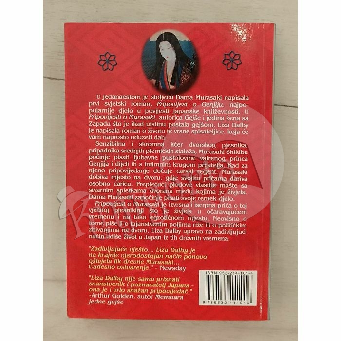 U jedanaestom je stoljeću Dama Murasaki napisala prvi svjetski roman, PRIPOVIJEST O GENJIJU, najpopularnije djelo u povijesti japanske književnosti. U PRIPOVIJESTI O MURASAKI, autorica GEJŠE i jedina žena sa Zapada što je ikad uistinu postala gejšom, Liza Dalby je napisala roman o životu te vrsne spisateljice, koja će vam naprosto oduzeti dah. Djelo je iscrpna i izvrsna priča o toj vječnoj pjesnikinji što je živjela u očaravajućem vremenu i na tako egzotičnom mjestu. Neovisno o tome piše li o tajanstvenim poljima riže ili o političkim zbivanjima na dvoru, Liza Dalby upravo na zadivljujući način udiše život u Japan iz tih drevnih vremena. “Zadivljujuće vješto, Liza Dalby je na krajnje vjerodostojan način ponovno oživjela lik drevne Murasaki. Čudesno ostvarenje.” – Newsday.