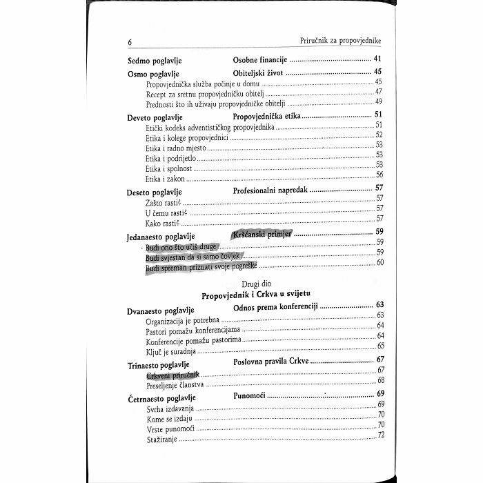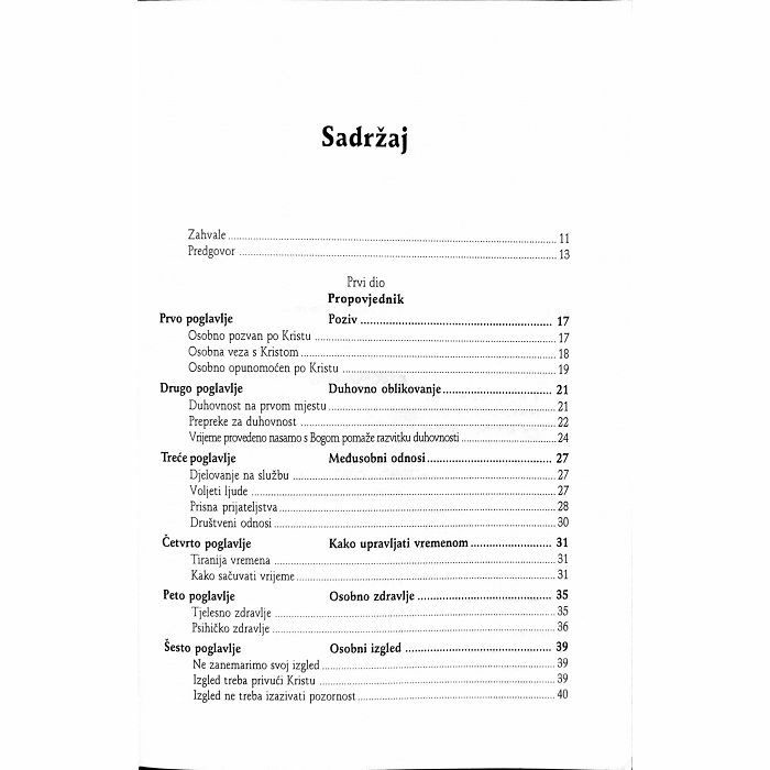 Priručnik za propovjednike doživio je posljednju reviziju 1977. godine. U svom osnovnom obliku napisan je niz godina ranije. U međuvremenu je u propovjedničkoj službi došlo do tako dramatičnih promjena da se pokazala potreba za novim priruč-nikom, a ne za revizijom staroga. Odajemo dužno priznanje i zahvalnost svima koji su pomogli u bilo kojoj od četiri faza pripreme ovog priručnika. Istraživanje. Tajnici Odjela za propovjedničku službu pri divizijama zamolili su kreativne pastore u svojim područjima da nam pošalju zamisli koje bismo uključili u novi priručnik. Dokumentacija Floyd Breseeja sadržavala je zamisli što ih je on prikupio tijekom više od četrdeset godina propovjedničke službe. Naravno da je u obzir uzet i raniji priručnik, zajedno sa Crkvenim priručnikom i Poslovnikom Generalne Konferencije. Pisanje priručnika. Izvorni rukopis napisao je Floyd Bresee uz pomoć tajnica Gwen Brown, Kathy Reid i Debre Hill. John M. Fowler je izvršio prvu lekturu teksta. Čitanje. Rukopis je poslan na adrese čitalačkog odbora koji se sastojao od stotinjak pastora, tajnika odjela za propovjedničku službu i administratorâ, kako bi predložili izmjene, od kojih su mnoge ušle u priručnik. Konačno odobrenje je dalo osoblje Udruženja za propovjedničku službu pri Generalnoj Konferenciji: W. Floyd Bresee, Carlos Aeschlimann, Ellen Bresee, Rex D. Edwards, John M. Fowler, J. David Newman, Sally Streib, Martin Weber i Jim Zachary. Nakladništvo. Rex D. Edwards je vodio brigu o dizajnu, Ann Taylor o stolnom prijelomu, a Jim Zachary o tisku i raspodjeli. Mnogi drugi pomogli su savjetom i vremenom. Svakome pripada naša iskrena zahvalnost.