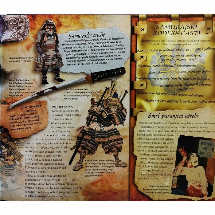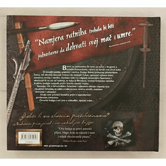 Boreći se samostalno ili rame uz rame s drugima u čvrstim formacijama, ratnici su davali svoj život kako bi osvojili zemlje, gradove i carstva. Knjiga Ratnici prikazuje proslavljene borce, od silovitih drevnih Asiraca do strašnih Zulua, opisujući njihove bitke, junaštvo, oružje i taktiku. Saznajte kako su odgajali neustrašive Spartance i obučavali ih za rat od rođenja, te kako je Boudicca, strašna britanska ratnička kraljica, podigla ustanak protiv moćne rimske vojske. Saznajte vise o krvožednim Aztecima i njihovom običaju čupanja srca ritualnim žrtvama, te uđite u tajanstveno carstvo nindži, majstora skrivanja i sabotaže! Ovdje ćete pronaći brutalne priče o legendarnim povijesnim ratnicima. Otvorite knjigu i ući cete u uzbudljiv, opasan svijet...