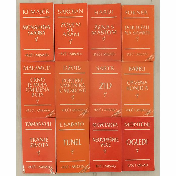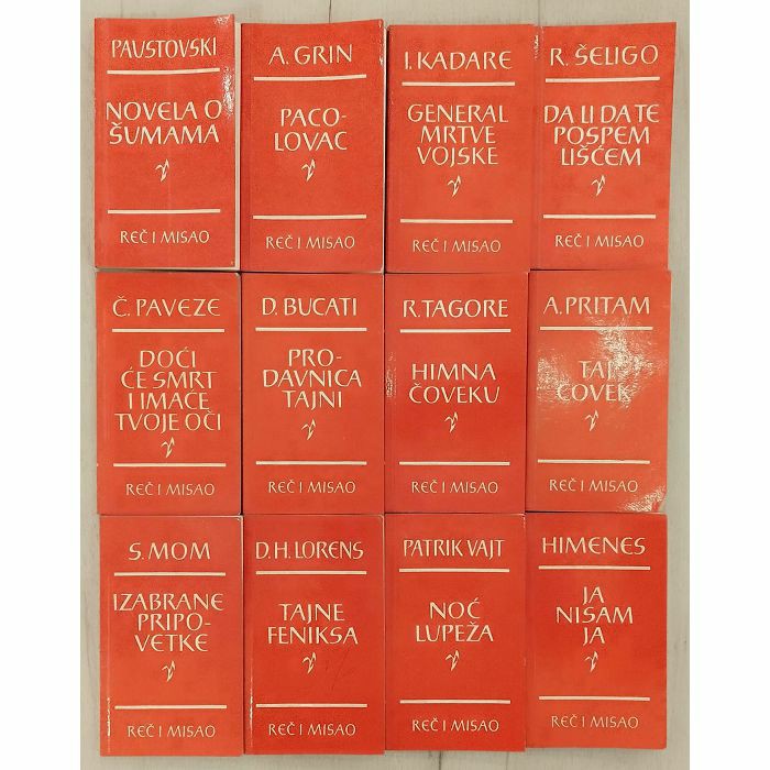 >>REČ I MISAO« Biblioteka Reč i misao donosi najbolja kla-sična i savremena ostvarenja svetske i domaće književnosti. U njenim redovnim kolima zastu-pljeni su pisci svih područja sveta i književna dela svih rodova i klasična dela narodnog stva-ralaštva. Ovo, jubilarno, kolo sadrži izbor najtraže-nijih od 300 objavljenih naslova u biblioteci Reč i misao.