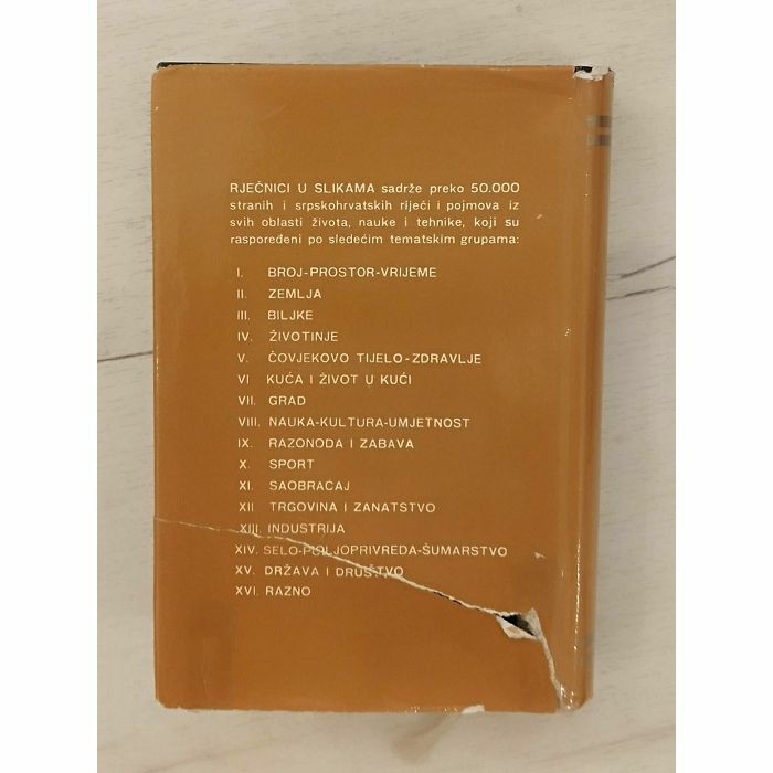 RJEČNICI U SLIKAMA Mijnden strani naziv predmets ne mois se lako razumjeti I pred staviti bez pomoći ilustracija. Ovo je naročito važno za poj move koji sami po sebi osns-čavaju skup predmeta koji svaki sa sebe nosi poseban naziv, po sebno ime. RJEČNICI U SLIKAMA Imaju za cilj obuhvatiti u obliku jedne tabele sve pojmove i nazive koji su vezani za jedan predmet. U našim RJEČNICIMA U SLIKAMA čitalac ne traži izolirane strane riječi koje se nalaze u običnim abecednim rječnicima, već cijels tame i skupove pojmova. RJEČNICI U SLIKAMA namenjeni su svakome tko uči strani jezik: učenicima srednjih, viših, struč nih I pedagoških škola, nastav nicima i prevediocima, posjetio cima raznih jezičkih kurseva, li cima koja odiase van zemlje na rad kao i svima onima koji žele na lak, pristupačan i suvremen način da nauče, upotpune ili usa vrie jedan strani jezik. RJEČNICI U SLIKAMA, sa svojih 600 tematskih tabela sa preko 50.000 predmetnih drugih poj mova, predstavljaju riznicu stra-nih riječi koju je vrlo teško sko ne i nemoguće naći u klasičnim rječnicima. RJEČNICI U SLIKAMA biće od dragocjene koristi svakome tho službeno ili kao turist putuje od nosno boravi u inostranstvu, jer če u njima uvijek naći strani naziv za predmet koji ga inte resira odgovarajući izraz ta tu stranu riječ. RJEČNICI U SLIKAMA radeni su po suvremenim pedagoškim i lek. sikografskim metodama. Ilustra cije su pripremljene po najno vijim dokumentacijama i dostig nucima nauke, tehnike kografije. leksi Tematske grupe rasporedens su sistematski i pregledna.