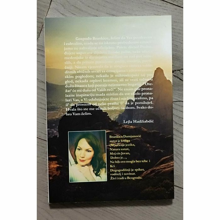 Dragi moji, Pred vama je treća zbirka mojih kratkih priča. Ovoj knjizi prethode sada već dobro poznata dela “Dobro je” i “Ne bih ovo mogla bez tebe”, dela o ljubavi, dobroti i saosećanju. U vremenu kada je vrlinu potisnuo strah od sutrašnjice, kada je briga o egzistenciji postala pitanje broj jedan u životu takozvanog običnog čoveka, kada se sa životom borimo umesto da se sa njim volimo, ove knjige deluju pomalo egzotično, ali nikako nisu utopija. Nisu, jer je svaka priča plod istinski proživljenog trenutka, rezultat moga ličnog preispitivanja i potrage za smislom, dokument o jednom životu koji nikako nije lak, ali je van svake sumnje lep. Svojim mislima, rečima i delima stojim iza svake napisane rečenice; svojim životom ih potpisujem. “Dobro je” je osvojilo srca čitalaca svojom nežnošću, “Ne bih ovo mogla bez tebe” nateralo ih je da se dublje zamisle nad svojom ulogom u sopstvenim životima, a knjiga koju sada držite u rukama najzrelije je moje delo i moj lični putokaz kako se kroz rad, veru i ljubav prema sebi i svetu koji nas okružuje stiže do tačke u kojoj se postiže duševni mir, uprkos okolnostima. Ovo nije knjiga recepata za srećan i uspešan život. Ovo je svedočanstvo o aktivnoj potrazi za smislom u okruženju koje nije uvek blagonaklono prema čoveku. Niko nas ne može naučiti da postanemo srećni. Sreća je prirodno stanje čoveka koji dostigne unutrašnji mir, jer samo je mir iznad sreće. Mir vam želim i radosno čitanje.