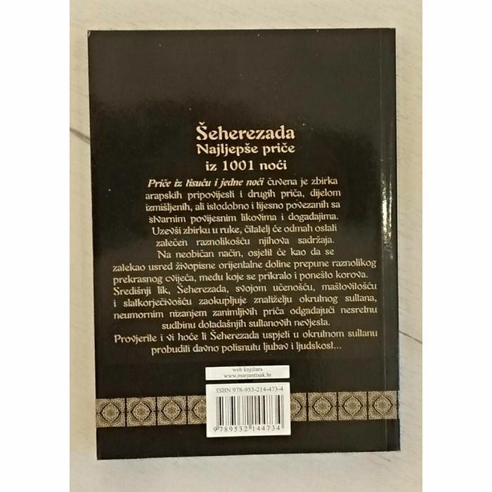 Priče iz tisuću i jedne noći čuvena je zbirka arapskih pripovijesti i drugih priča, dijelom izmišljenih, ali istodobno i tijesno povezanih sa sNarnim povijesnim likovima i događajima. Uzevši zbirku u ruke, čitatelj će odmah ostali zalečen raznolikošću njihova sadržaja. Na neobičan način, osjetit će kao da se zalekao usred živopisne orijentalne doline prepune raznolikog prekrasnog cvijeća, medu koje se prikralo i ponešto korova. Središnji lik, Šeherezada, svojom učenošću, mašlovilošću i slatkorječivošću zaokupljuje znaliželju okrulnog sultana, neumornim nizanjem zanimljivih priča odgadajući nesrelnu sudbinu dotadašnjih sullanovih nevjesta. Provjerile i vi hoće li Šeherezada uspjeti u okrulnom sultanu probudili davno polisnutu ljubav i ljudskost...