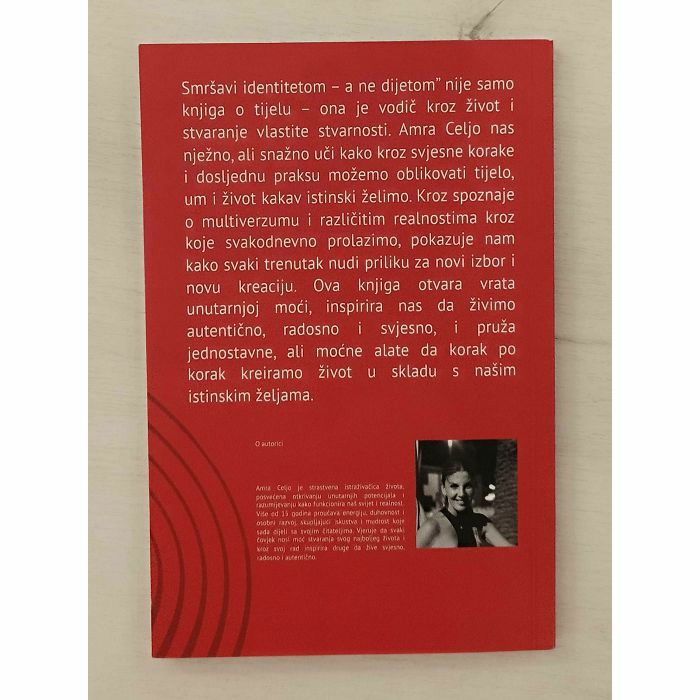 Smršavi identitetom a ne dijetom" nije samo knjiga o tijelu ona je vodič kroz život i stvaranje vlastite stvarnosti. Amra Celjo nas nježno, ali snažno uči kako kroz svjesne korake i dosljednu praksu možemo oblikovati tijelo, um i život kakav istinski želimo. Kroz spoznaje o multiverzumu i različitim realnostima kroz koje svakodnevno prolazimo, pokazuje nam kako svaki trenutak nudi priliku za novi izbor i novu kreaciju. Ova knjiga otvara vrata unutarnjoj moći, inspirira nas da živimo autentično, radosno i svjesno, i pruža jednostavne, ali moćne alate da korak po korak kreiramo život u skladu s našim istinskim željama.