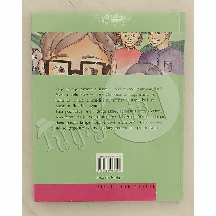Moje ime je Zvonimir, idem u treći razred osnovne škole, živim u selu koje se zove Omorina, a moja mama je učiteljica, a tata je učitelj i mi živimo u stanu koji se nalazi u školskoj zgradi. Tata podučava prvi i drugi razred, a mama treći i četvrti. A o čemu ću ja sve pisati u ovu bilježnicu što će jednoga dana postati knjiga koja se zove memoari? Pisat ću sve što se dogodilo od mog šestog rodendana pa naovamo.