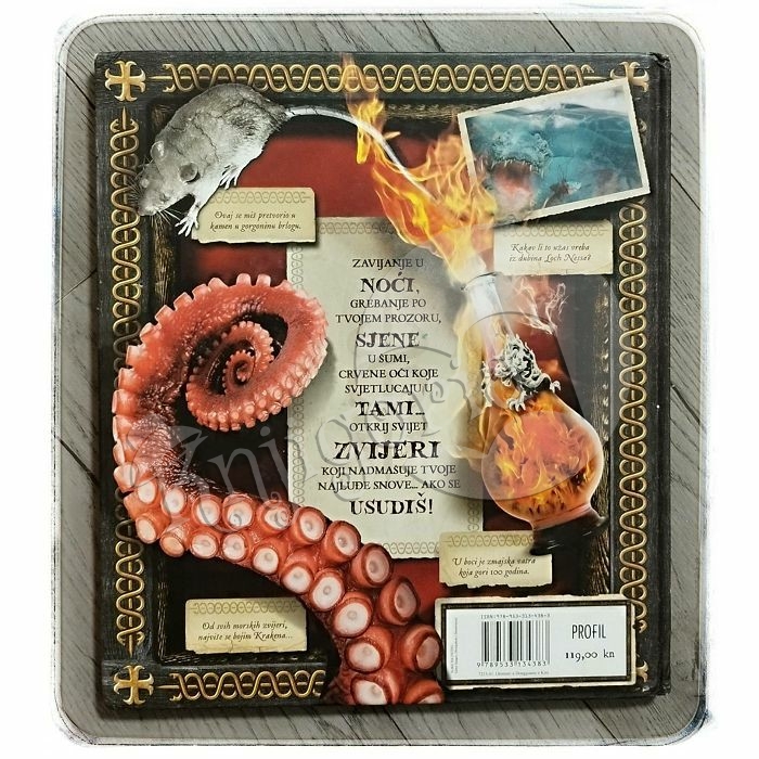 U ovoj ćete knjizi pronaći izvanredne priče o otkrivanju fantastičnih bića poput Jetija, Gorgona, Hidre, zmajeva, krakena, kelpija, hipogrifa, čupakabre, vukodlaka i mnoštva strašnih mješanaca te mnogih drugih zvijeri. Za neke ste sigurno čuli, za neke ne, za neke ste mislili da su plod ljudske mašte ili mita, a neke ste možda i sam sreli. Knjiga je podijeljena na poglavlja zvijeri na kopnu, čudovišta iz vode, čudovišta iz zraka i noćna bića. Najupečatljive su stranice s fotografijama koje dokazuju njihovo postojanje. Očaravajuća knjiga!