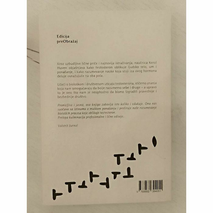 About the book T - Priča o testosteronu, hormonu koji vlada i deli Kroz uzbudljive lične priče i najnovija istraživanja, naučnica Kerol Huven objašnjava kako testosteron oblikuje ljudsko telo, um i ponašanje, i kako razumevanje nauke koja stoji iza ovog hormona deluje osnažujuće na oba pola.