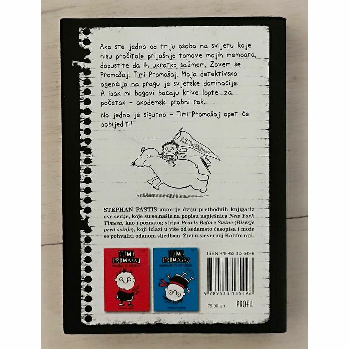 Ako ste jedna od triju osoba na svijetu koje nisu pročitale prijašnje tomove mojih memoara, dopustite da ih ukratko sažmem. Zovem se Promašaj. Timi Promašaj. Moja detektivska agencija na pragu je svjetske dominacije. A ipak mi bogovi bacaju krive lopte: za početak - akademski probni rok.
