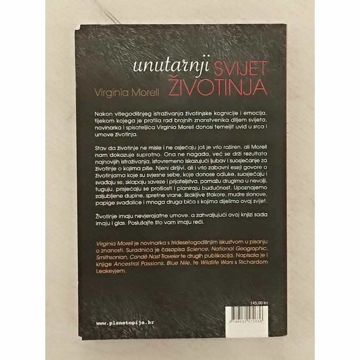 Nakon višegodišnjeg istraživanja životinjske kognicije i emocija, tijekom kojega je pratila rad brojnih znanstvenika diljem svijeta, novinarka i spisateljica Virginia Morell donosi temeljit uvid u srca i umove životinja. Stav da životinje ne misle i ne osjećaju još je vrlo raširen, ali Morell nam dokazuje suprotno. Ona ne nagađa, već se drži rezultata najnovijih istraživanja, istovremeno iskazujući ljubav i suosjećanje za životinje o kojima piše. Njeni dirljivi, ali i vrlo zabavni eseji govore o životinjama koje su svjesne sebe, koje donose odluke, suosjećaju i svađaju se, sklapaju saveze i prijateljstva, pomažu drugima u nevolji, tuguju, prisjećaju se prošlosti i planiraju budućnost. Upoznajemo zaljubljene dupine, spretne vrane, škakljive štakore, mudre slonove, papige svađalice i mnoga druga bića s kojima dijelimo ovaj svijet. Životinje imaju nevjerojatne umove, a zahvaljujući ovoj knjizi sada imaju i glas. Poslušajte što vam imaju reći.