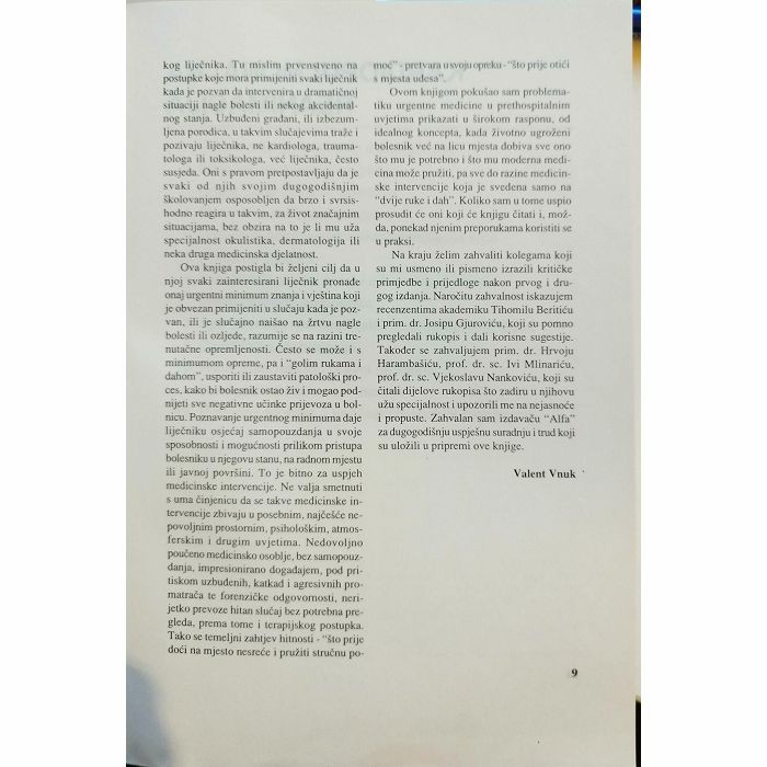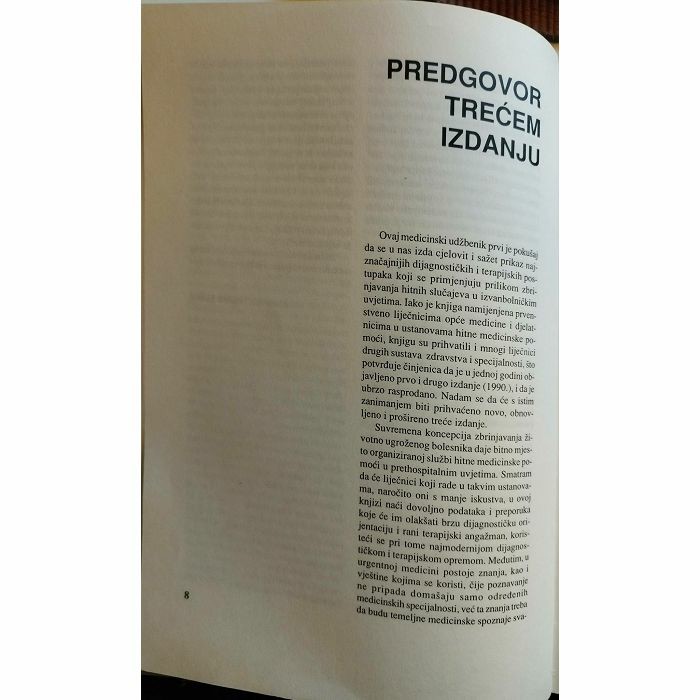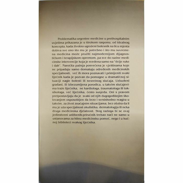 Razvoj medicine doveo je do boljeg razumijevanja presudnih patofizioloških zbivanja u hitnim stanjima. Ustanovljeno je da najviše ozlijedenih i naglo oboljelih umire, ne zbog toga što je težina bolesti inkopatibilna sa životom, već zbog reakcijskih epifenomena, koji se mogu spriječiti pravovremenom medicinskom interven-cijom na mjestu događaja. Skretanje morbiditeta prema hitnim slučajevima, koje je uzročno povezano s pojavom dviju modernih epidemija bolestima kardiovaskularnog sustava i ozljeda, zahtijeva dodatnu edukaciju velikog broja medicinskih djelatnika, kako bi brza dijagnostička ori-jentacija i rani terapijski postupak bili u korelaciji sa suvremenim medicinskim zahtjevima i mogućnostima. "Ovaj vrlo dobar, moderni priručnik urgentne me-dicine obuhvaća sve bitne aspekte pružanja hitne medicinske pomoći, a kao temeljno djelo nove medicin-ske discipline davat će poticaj i znanstvenom razvoju urgentne medicine." (Iz recenzije akademika Tihomila Beritića)