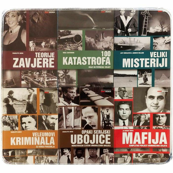 Opaki serijski ubojice - Charlotte Greig Veleumovi kriminala - Charlotte Greig Mafija - Jo Durden Smith Teorije zavjere - Charlotte Greig 100 katastrofa koje su potresle svijet - Nigel Cawthorne Veliki misteriji - Lucy Doncaster, Andrew Holland