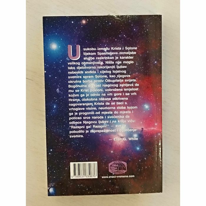 U sukobu izmedu Krista i Sotone tijekom Spasiteljeve.zemaljske službe raskrinkan je karakter velikog obmanjivača. Ništa nije moglo tako djelotvorno iskorijenjti ljubav nebeskih anđela i cijelog lojalnog svemira spram Sotone, kao nijegova okrutna borba protiv Otkupitelja svijeta. Bogohulna drekost njegovog zahtjeva da mu se Krist pokloni, uobražena smjelost kojom ga je odnio na vrh gore i na vrh Hráma, zlokobna nakana otkrivena nagovaranjem Krista da se baci s vrtoglave visine, neumorna zloba kojom ga je progonio od mjesta do mjesta i poticao srce naroda i svećenika da odbace Njegovu ljubav i na kraju viču: "Razapni ga! Razapni!" sve to pobudilo je zaprepaštenost i ogorčenje svemira. Ellen G. White