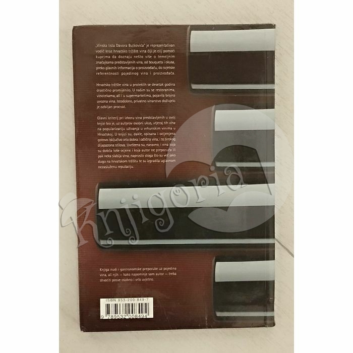„Vinska lista Davora Butkovića” je reprezentativan vodič kroz hrvatsko tržište vina čiji je cilj pomoći kupcima da doznaju nešto više o temeljnim značajkama predstavljenih vina, od bouqueta i okusa, preko glavnih informacija o proizvođaču, do svjetske referentnosti pojedinog vina i proizvođača. Hrvatsko tržište vina u proteklih se desetak godina drastično promijenilo. U našim su se restoranima, vinotekama, ali i u supermarketima, pojavila brojna uvozna vina. Istodobno, privatno vinarstvo doživjelo je ozbiljan procvat. Glavni kriterij pri izboru vina predstavljenih u ovoj knjizi bio je, uz autorov osobni ukus, utjecaj tih vina na popularizaciju uživanja u vrhunskim vinima u Hrvatskoj. U knjizi su, dakle, opisana i ocijenjena gotovo isključivo vrlo dobra i odlična vina, i to širokog dijapazona stilova. Uvrštena su, naravno, I vina koja su dobila loše ocjene i koja autor ne preporuča ili pak neka slabija vina, naprosto stoga što su već jako dugo na hrvatskom tržištu te su izgradila uglavnom nezasluženu reputaciju. Knjiga nudi i gastronomske preporuke uz pojedina vina, ali njih – kako napominje sam autor – treba shvatiti posve osobno i vrlo uvjetno.