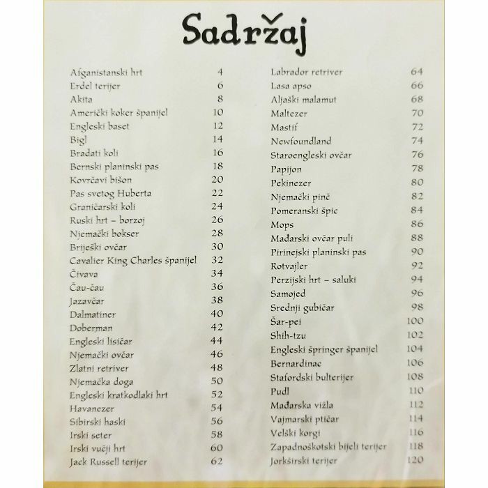 ovome vodiču predstavljeno je pedeset devet pasmina pasa. Za svaku se pasminu u nekoliko rečenica navode najistaknutija svojstva u vezi s izgledom i ponašanjem, a tekst je praćen brojnim fotografijama kako odraslih pasa tako i njihovih štenaca.