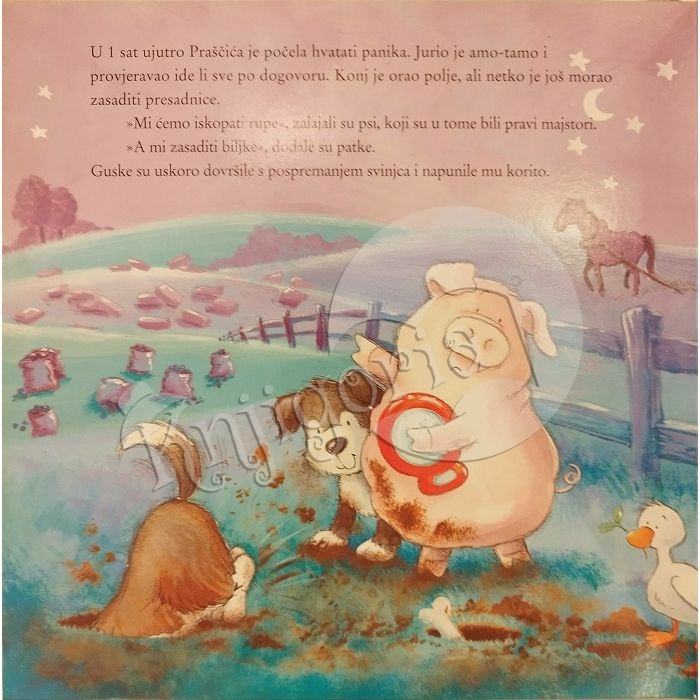Sutra je gazdin rođendan, ali što da mu daruju životinje na imanju? Praščić se dosjetio! Ako zajednički obave sve njegove poslove, mogao bi se cio dan odmarati. Hoće li životinje uspjeti dovršiti sve poslove? Hoće li im uspjeti rođendansko iznenađenje? Strpite se, doznat ćete! Prekrasna slikovnica sa satom i kazaljkama koje pokazuju vrijeme analogno i digitalno