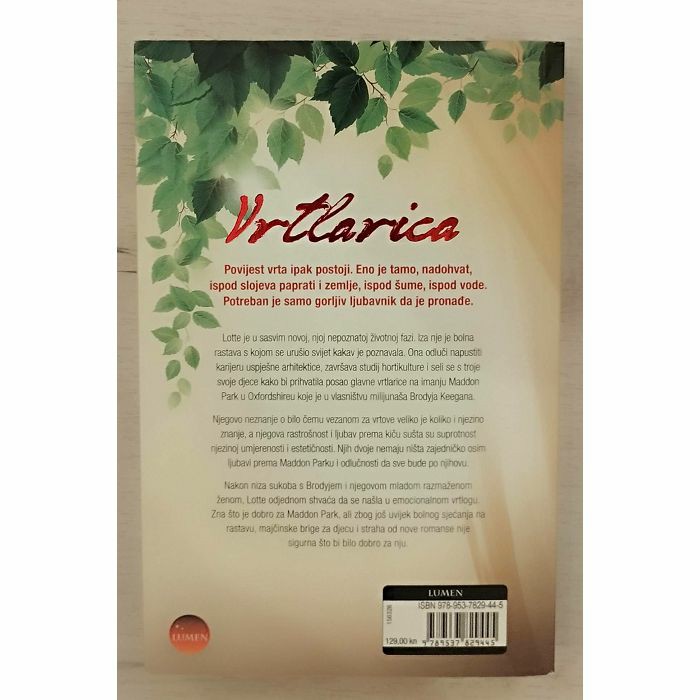 Savršeno ljetno štivo – roman o ljubavi i vrtlarstvu, glavna junakinja koja se oporavlja od razvoda obnavlja zaboravljeni vrt u Oxfordshireu i pronalazi izlječenje i novu ljubav kroz taj proces. Ispod paprati, pod zemljom, ispod šume, pod vodom, leži povijest vrta. Potreban je gorljiv ljubavnik da ga pronađe. Lotte je na nepoznatom teritoriju. Nakon razvoda i dugotrajnog preispitivanja sebe, napušta svoju uspješnu karijeru arhitektice specijalizirane za povijest vrtova i sa svoje troje djece napušta grad kako bi se zaposlila kao glavni vrtlar kod milijunaša Brodyja Keegana u Maddon Parku u Oxfordshireu. Brody je neznalica kad su u pitanju vrtovi, njegov ukus je ekscentričan dok je njezin diskretan, imaju malo toga zajedničkog osim strasti koju dijele prema Maddon parku i odlučnosti da nametnu svoju volju. Kad se Lotte sukobi sa svojim šefom i njegovom razmaženom mladom suprugom naći će se u vrlo kompliciranoj i za nju emocionalno iscrpljujućoj situaciji. Uvjerena u ono što treba napraviti s vrtom, ali s teretom iskustva nedavnog razvoda, brige za djecu i straha od sve kompliciranije situacije u kojoj se našla sve je manje sigurna u ono što je dobro za nju. Prijevod Marija Perica