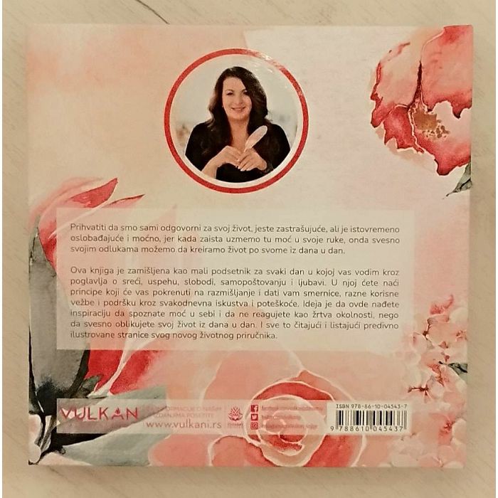 Prihvatiti da smo sami odgovorni za svoj život, jeste zastrašujuće, ali je istovremeno oslobađajuće i moćno, jer kada zaista uzmemo tu moć u svoje ruke, onda svesno svojim odlukama možemo da kreiramo život po svome iz dana u dan. Ova knjiga je zamišljena kao mali podsetnik za svaki dan u kojoj vas vodim kroz poglavlja o sreći, uspehu, slobodi, samopoštovanju i ljubavi. U njoj ćete naći principe koji će vas pokrenuti na razmišljanje i dati vam smernice, razne korisne vežbe i podršku kroz svakodnevna iskustva i poteškoće. Ideja je da ovde nađete inspiraciju da spoznate moć u sebi i da ne reagujete kao žrtva okolnosti, nego da svesno oblikujete svoj život iz dana u dan. I sve to čitajući i listajući predivno ilustrovane stranice svog novog životnog priručnika.