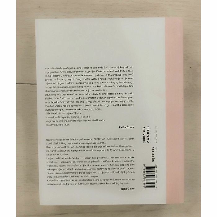 „Napisati antivodič po Zagrebu sjajna je ideja na koju može doći samo onaj tko grad voli i koga grad boli. Arhitektica, konzervatorica, povjesničarka i teoretičarka arhitekture dr. sc. Zrinka Paladino u mnogo je navrata dala dokaze i o jednome i o drugome. Ne samo živeći Zagreb i u Zagrebu, nego iz živog središta uvida, a nekad i odlučivanja , o njegovim mijenama i njegovoj sudbini – upozoravala je, pa i po cijenu vlastitog egzistencijalnog i javnog statusa, na kobne pogreške u prostoru zbog kojih baština neće moći biti predana idućim naraštajima kao visoka vrijednost koju smo naslijedili… Davno su prošla vremena od monumentalne ostavke Milana Preloga s mjesta ravnatelja službe zaštite. Etički principi, zajedno s autoritetom službe, pretrpjeli su različite stupnjeve prilagodbe „alternativnim istinama“. Stoga glasovi i geste poput ove knjige Zrinke Paladino vraćaju nadu u povezanost svijesti i savjesti, bez čega je filozofija zaista samo sluškinja teologije, a konzervatorska struka servis moći…