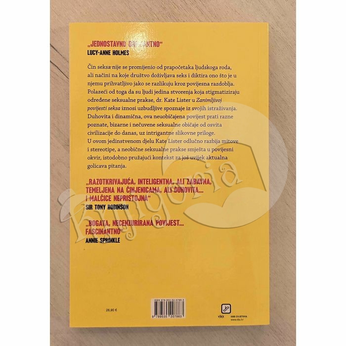 Čin seksa nije se promijenio od prapočetaka ljudskoga roda, ali načini na koje društvo doživljava seks i diktira ono što je u njemu prihvatljivo jako se razlikuju kroz povijesna razdoblja. Polazeći od toga da su ljudi jedina stvorenja koja stigmatiziraju određene seksualne prakse, dr. Kate Lister u Zanimljivoj povijesti seksa iznosi uzbudljive spoznaje iz svojih istraživanja. Duhovita i dinamična, ova neuobičajena povijest prati razne poznate, bizarne i nečuvene seksualne običaje od osvita civilizacije do danas, uz intrigantne slikovne priloge.