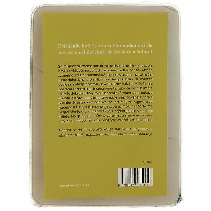 Svi mislimo da znamo hodati! No preispitamo li iskreno svoje navike uvidjet ćemo da – čak i ako smo predani hodači – obično zapnemo u rutini: hodamo uvijek istim stazama, na isti način, u isto doba dana, s istim ljudima. Ovaj istodobno praktičan i šarmantan vodič postavit će vam izazov: kako da vaše šetnje postanu raznovrsne, inspirativne te kako da od njih imate što više dobrobiti. Majstorski ispreplićući znanstvene dokaze, vlastita iskustva i povijesne anegdote, nagrađivana autorica Annabel Streets nas neodoljivo, pa i neumoljivo, nagovara da izađemo iz kuće, pokrenemo tijelo, osnažimo um i tijelo i popravimo raspoloženje u najzdravijoj i najstarijoj aktivnosti na svijetu. No tjelesno i duševno zdravlje su sretne nuspojave, kaže ona, a radosti hodanja mnogo su veće od brojenja koraka. Hodanje je način da otkrijete nova mjesta, povežete se s prirodom, njegujete prijateljstva, izoštrite osjetila i zadovoljite svoju žudnju za daljinama, slobodom i ljepotom u ovom silno zamršenom i predivnom svijetu u kojem živimo. prevoditeljica: Aleksandra Barlović
